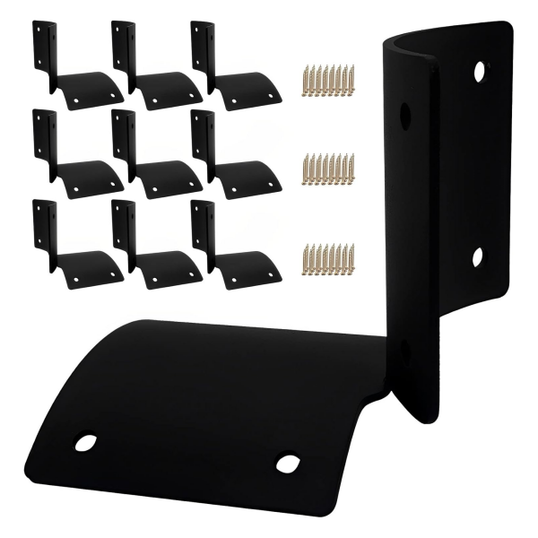 - Package includes - 10 x round post fence brackets, 80 x screws