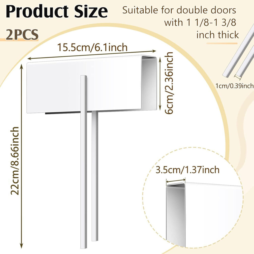 You will get: there are 2 double-fold door locks, which are enough to meet your needs. They are suitable for most double-fold doors, folding doors, wardrobes, food storage rooms and other dimensions. The double-fold safety lock is about 15.5x52x3.8cm/6.1x8.7x1.5cm, which is suitable for doors with a thickness of less than 1-3/8 inches. Solid material: The double-door closet lock is made of high-quality stainless steel, which is firm and not easy to break or break. Simple installation: when drilling, you don't need to fold the door lock, just slide it to the top of the door, slide the lock to the folding center after closing the door, and then it will lock, which is convenient to use and widely used: the child safety door lock is suitable for the protection of children and pets, and is suitable for double folding doors in bedrooms, wardrobes, storage rooms, laundry rooms, game rooms and other areas.