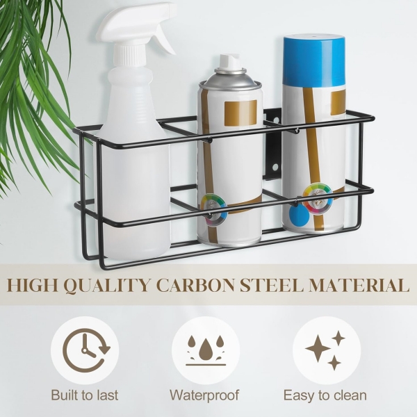 - Reliable Structure and Material: benefit from the sturdy steel material of the spray bottle rack that has stability and longevity; With the spray bottle rack, say goodbye to regular replacements and enjoy a reliable fix for your storage needs; Its attractive black color adds a sleek touch to your space