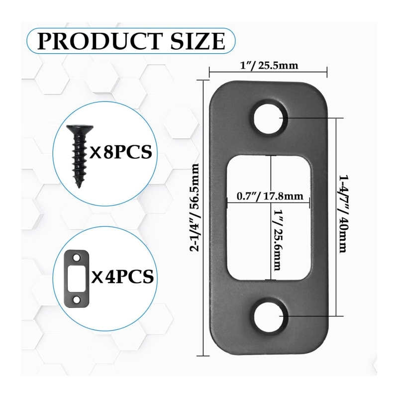 4. Easy Installation: The Strike Plate is designed for universal fit, making it easy to install on standard residential doors without the need for specialized tools or equipment, saving time and effort for homeowners and professionals alike