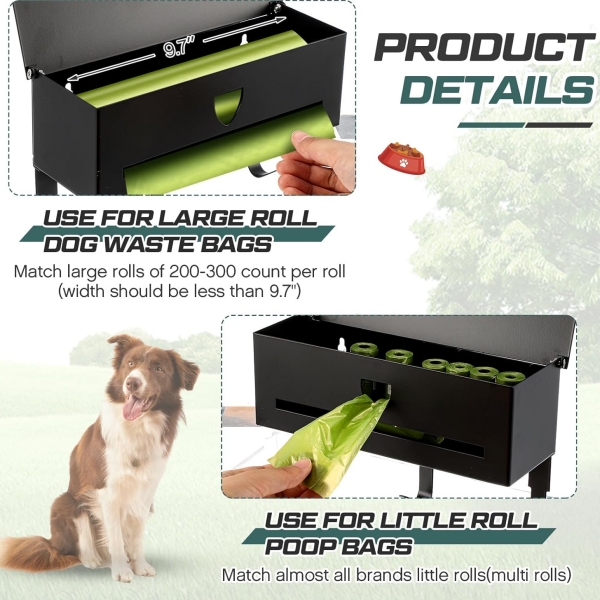 Strong materials: Poor-quality plastic dispensers may not last long, while our strong shit bag dispensers are made of high-quality metal and can withstand daily use and bad weather conditions.