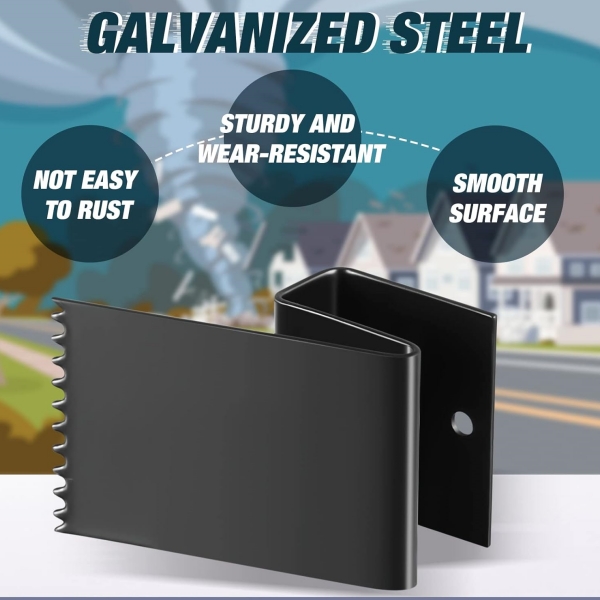 - Reliable Material: hurricane shutter clips are made of wear resistant, strong and rust proof carbon steel, reusable and reliable, designed to clamp the wall protruding outward at a 90 degree right angle, which play the role of fixing plywood and can protect your window in the storm